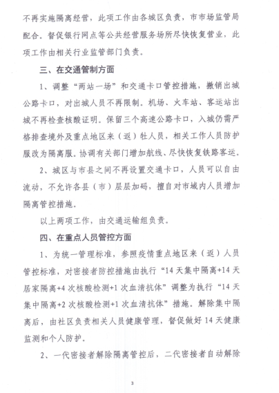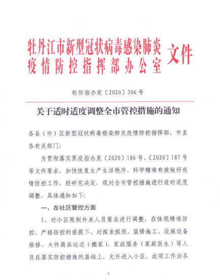 關于適時適度調整全市管控措施的通知